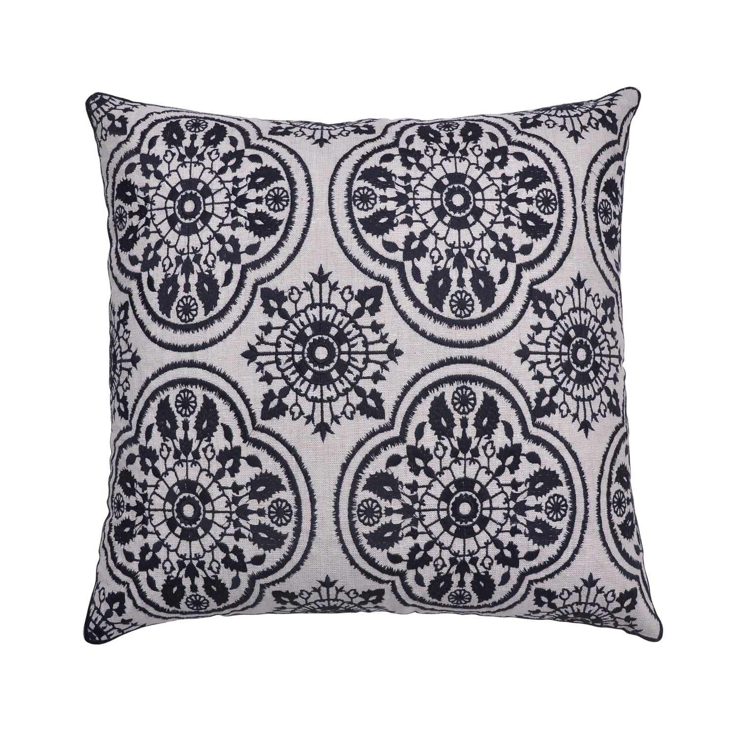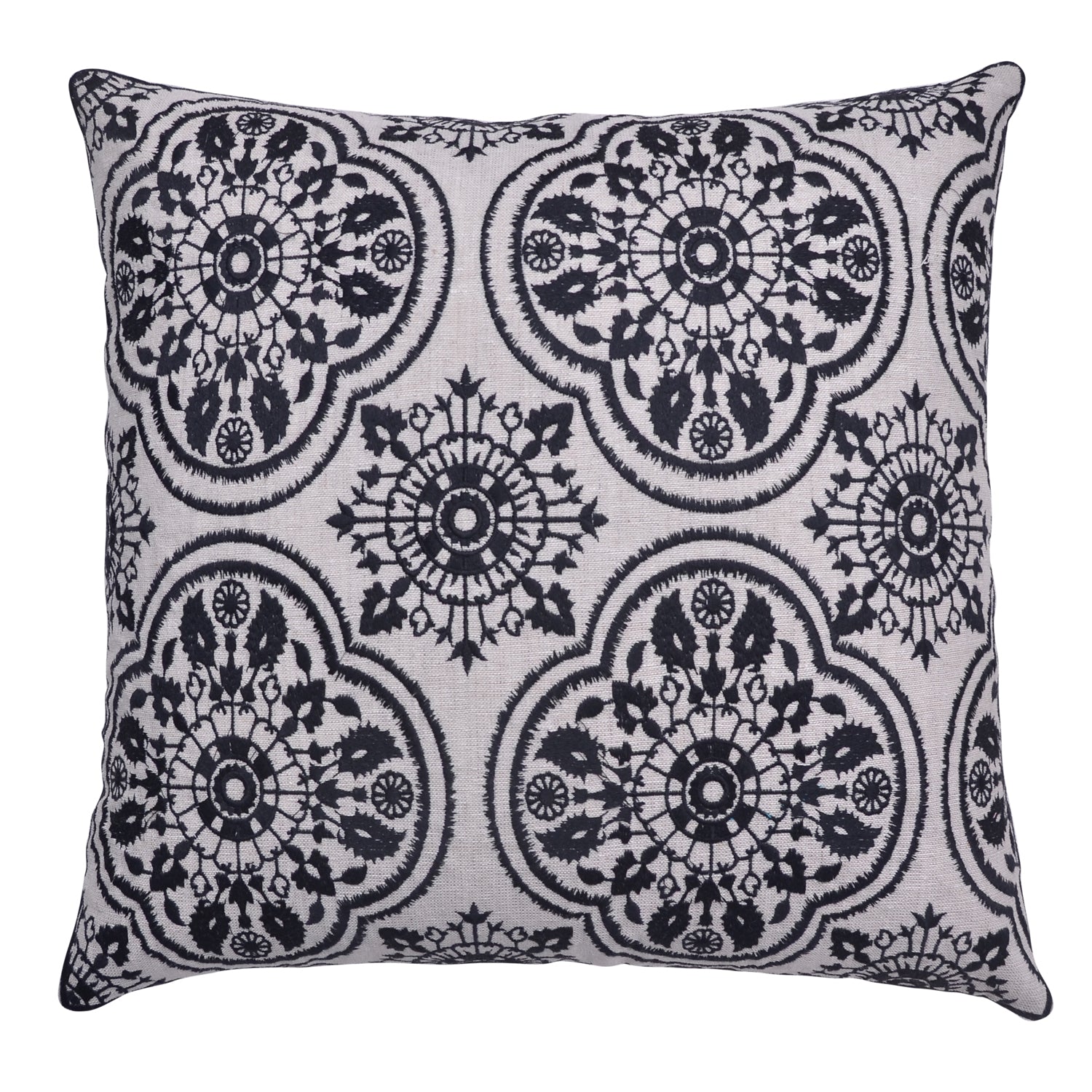 Elegant Medallion Embroidered Throw Cushion – Black & Beige