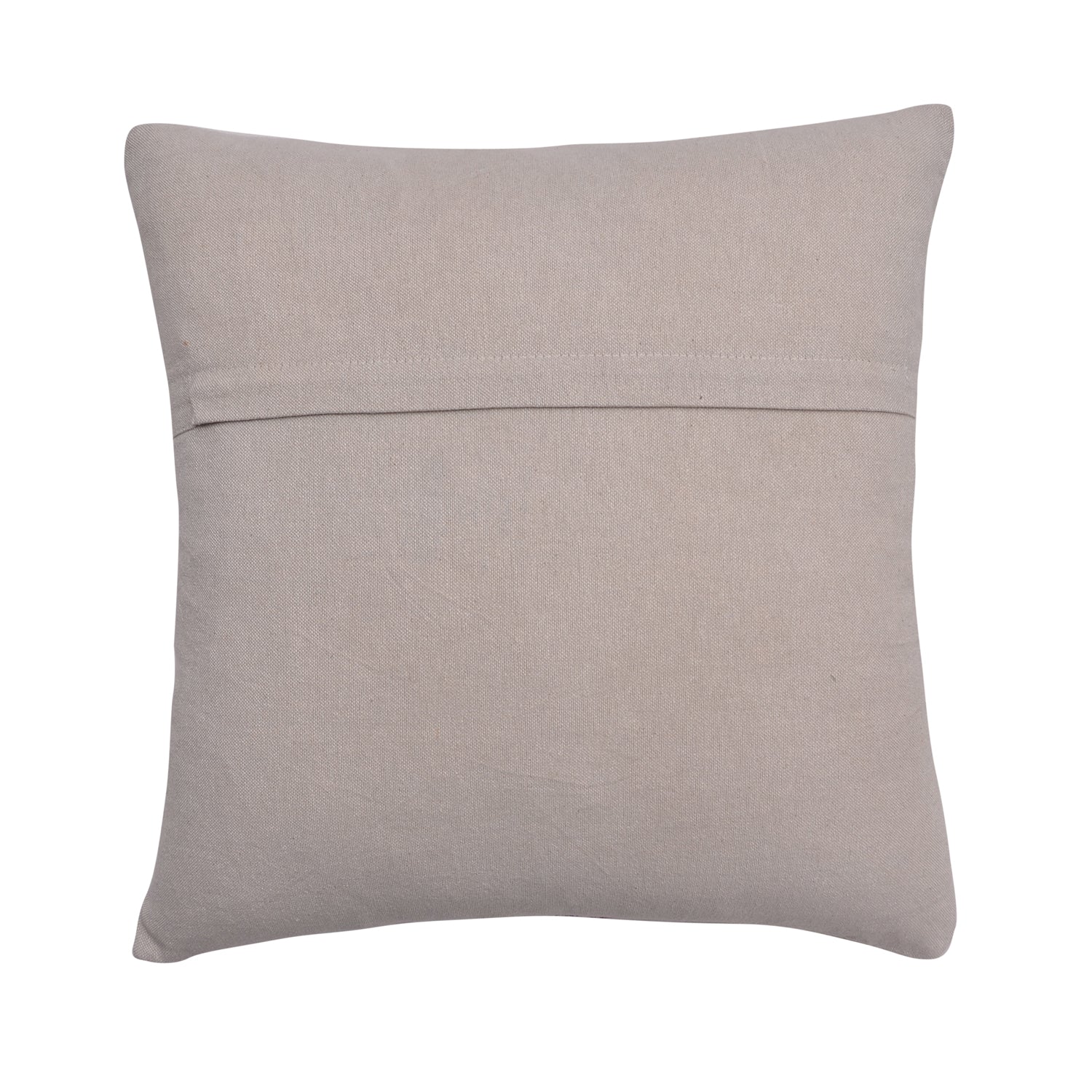 Celebrate color and culture with the Ethnic Harmony Embroidered Cushion Cover, a vibrant blend of traditional motifs and modern aesthetic. Divided into quadrants by decorative pink embroidery, this cover features a variety of tribal-inspired patterns—chevrons, diamonds, crosses, and waves—stitched in bold tones like yellow, teal, magenta, red, and navy on a soft beige base.